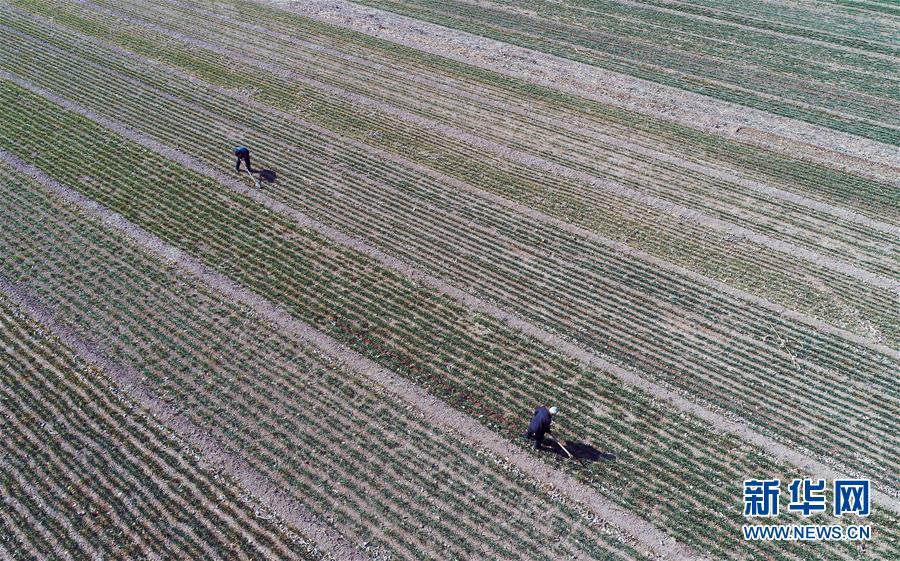 3月6日,河北省邯郸市涉县会里村农民在田间劳作(无人机拍摄)。当日是二十四节气中的惊蛰,随着气温回升,各地农民忙着春耕春管,田间地头到处是一派忙碌景象。新华社发(郝群英 摄)