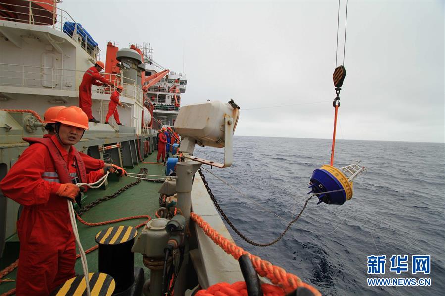 科考队员在西风带放浮标(2019年1月1日摄)。新华社发(中国第35次南极科学考察队供图)