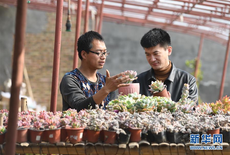 3月7日,张庆元在“多肉花园”向顾客介绍多肉盆栽。新华社记者 朱旭东 摄