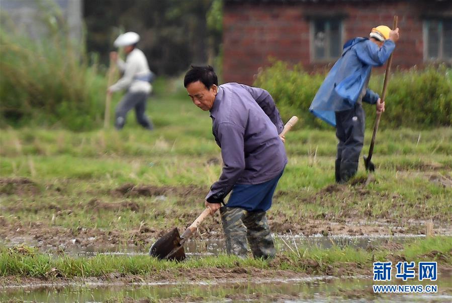 3月6日,广西钦州市康熙岭镇农民在开垦秧田。近日,广西钦州农民抓住“冷尾暖头”时机,翻耕秧田、撒种、盖膜、搭拱棚,开展早稻生产工作。新华社记者 张爱林 摄