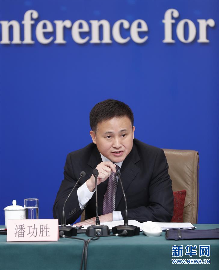 3月10日,十三届全国人大二次会议新闻中心举行记者会,邀请中国人民银行行长易纲,副行长陈雨露,副行长、国家外汇管理局局长潘功胜,副行长范一飞就“金融改革与发展”相关问题回答中外记者提问。这是潘功胜在回答记者提问。新华社记者 沈伯韩 摄