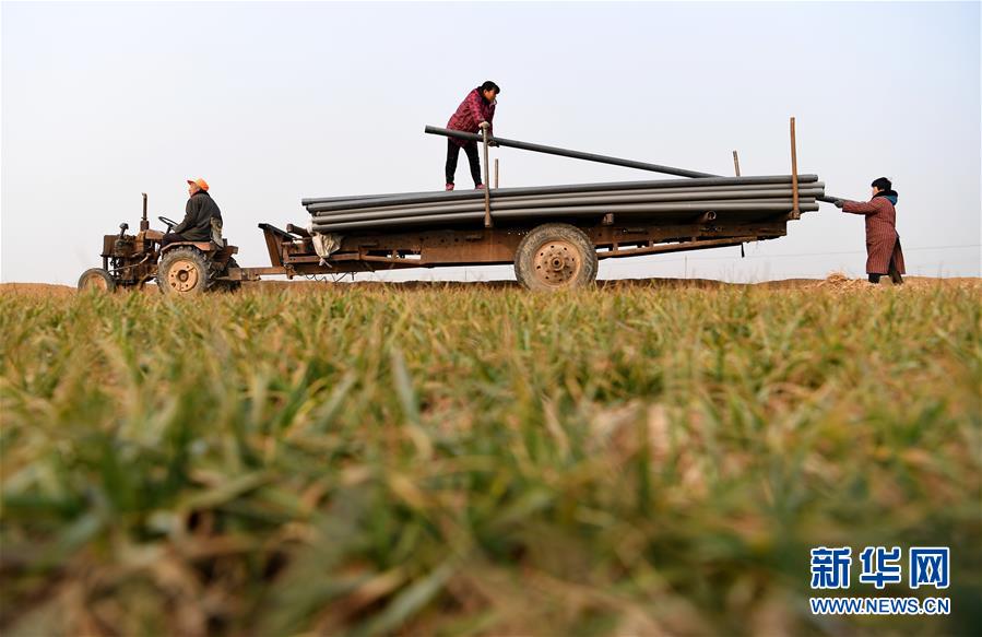 3月10日,工人在河北省巨鹿县柳洼村农田内铺设地下输水管道。 目前,河北各地陆续进入春耕备播阶段,河北省巨鹿县涉农部门抢抓时机,兴修农田水利等基础设施,为全年农业丰收打好基础。 新华社记者 牟宇 摄