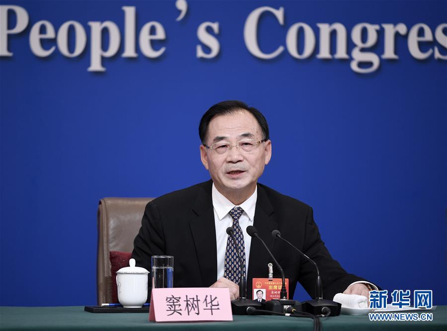 3月10日,十三届全国人大二次会议新闻中心举行记者会,邀请全国人大监察和司法委员会副主任委员徐显明、全国人大财政经济委员会副主任委员尹中卿、全国人大教育科学文化卫生委员会副主任委员吴恒、全国人大环境与资源保护委员会副主任委员窦树华和全国人大常委会预算工作委员会副主任朱明春就“人大监督工作”相关问题回答中外记者提问。这是窦树华在回答记者提问。 新华社记者 王鹏 摄