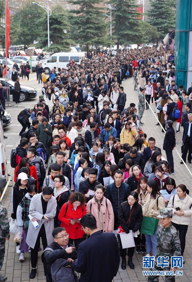 3月10日,求职者在招聘会现场排起长队。 当日,2019年陕西省县及县以下医疗卫生机构定向招聘医学类本科毕业生招聘会在西安举行。招聘现场提供就业岗位2441个,定向招聘人员除纳入事业单位编制内管理外,还将在工资、保障性住房、晋升等方面按规定给予相关倾斜和优先政策,吸引大量医学毕业生前来应聘。 新华社记者 邵瑞 摄