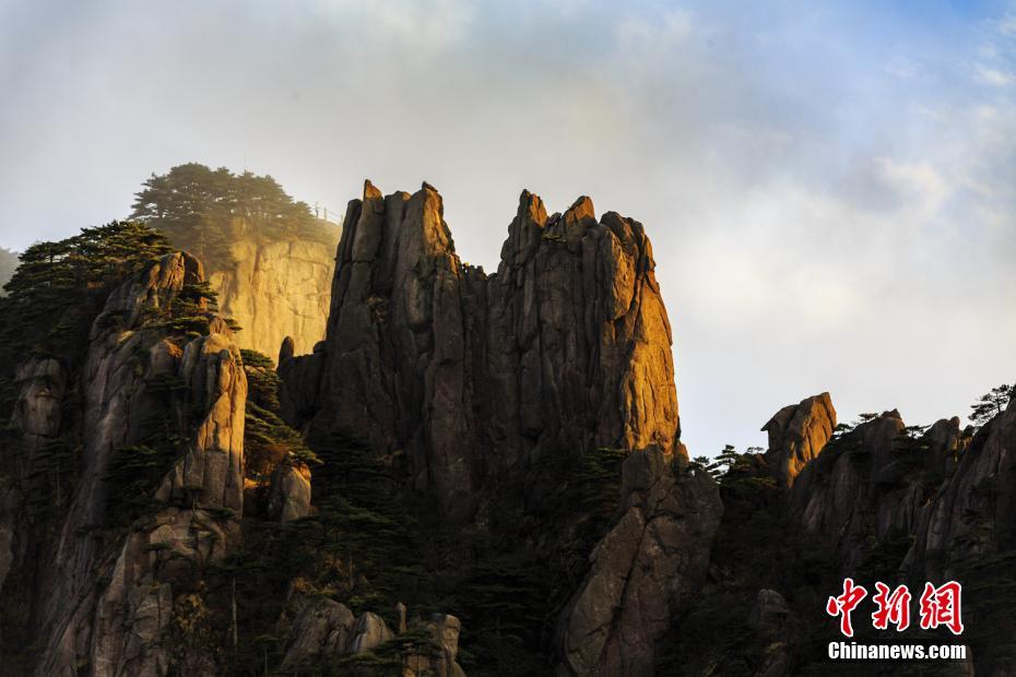 3月9日傍晚,安徽黄山风景区日落时分,现大面积云海景观,夕阳余晖铺洒在云海之上,光辉万丈,移步换景,每个角度都是一副绝妙的山水图画。云海环绕中的黄山峰峦。文/图刘浩 叶永清