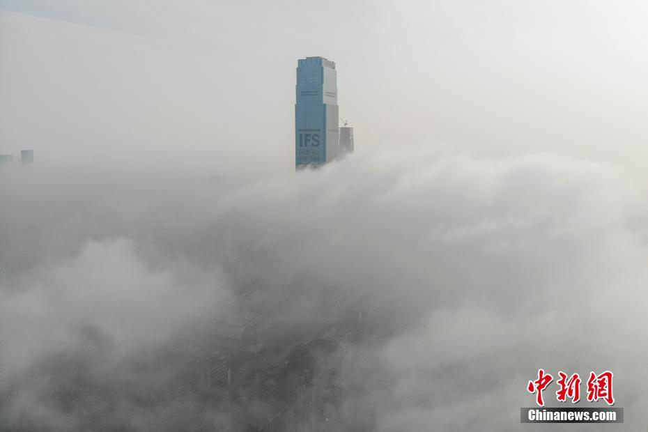 3月10日,湖南长沙遭遇大雾锁城,建筑物穿雾而出犹如仙境。当日上午,长沙气象台连发三条大雾预警信号,长沙市出现最低能见度不足200米的大雾。 杨华峰 摄