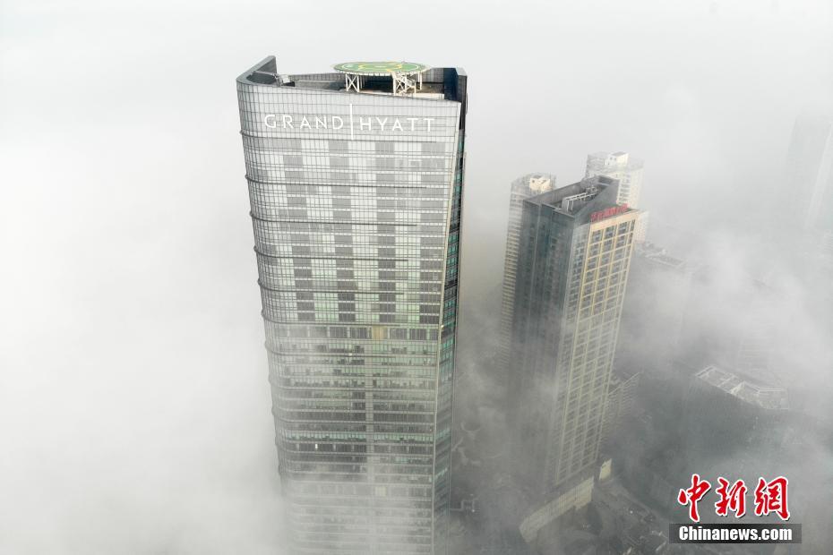 3月10日,湖南长沙遭遇大雾锁城,建筑物穿雾而出犹如仙境。当日上午,长沙气象台连发三条大雾预警信号,长沙市出现最低能见度不足200米的大雾。 杨华峰 摄