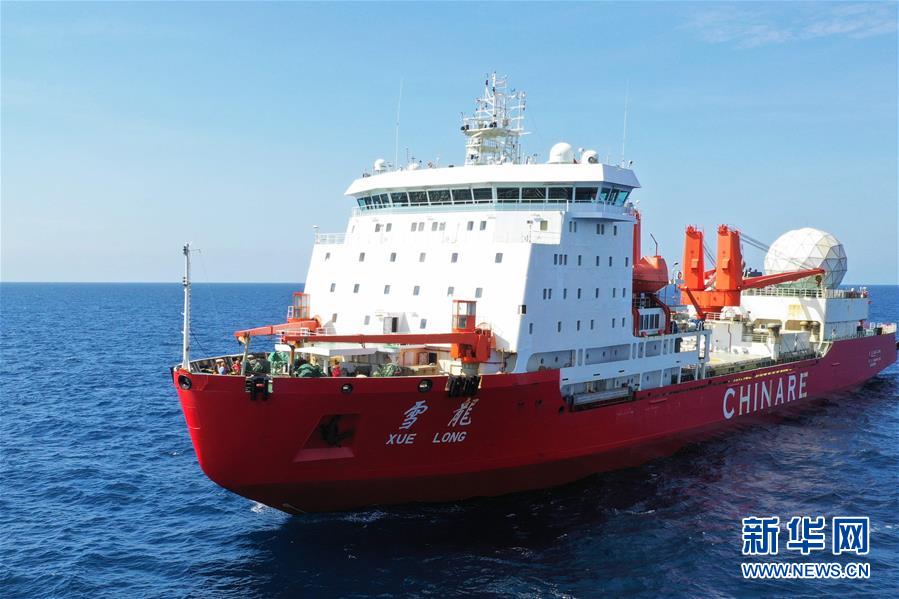 与冰山发生碰撞后修复一新的“雪龙”号(2019年3月5日摄)。经过3万海里航行,3月10日,“雪龙”号极地考察破冰船载着中国第35次南极科考队队员安全抵达上海吴淞检疫锚地,办理进港入关手续。新华社发(中国第35次南极科考队供图)