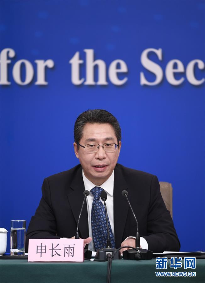 3月11日,十三届全国人大二次会议新闻中心举行记者会,邀请国家市场监督管理总局局长张茅、国家药品监督管理局局长焦红、国家知识产权局局长申长雨就“加强市场监管 维护市场秩序”相关问题回答中外记者提问。这是申长雨在回答记者提问。 新华社记者 王鹏 摄