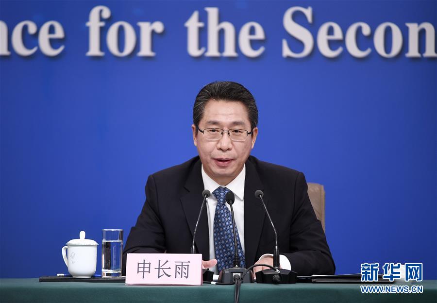 3月11日,十三届全国人大二次会议新闻中心举行记者会,邀请国家市场监督管理总局局长张茅、国家药品监督管理局局长焦红、国家知识产权局局长申长雨就“加强市场监管 维护市场秩序”相关问题回答中外记者提问。这是申长雨在回答记者提问。 新华社记者 王鹏 摄