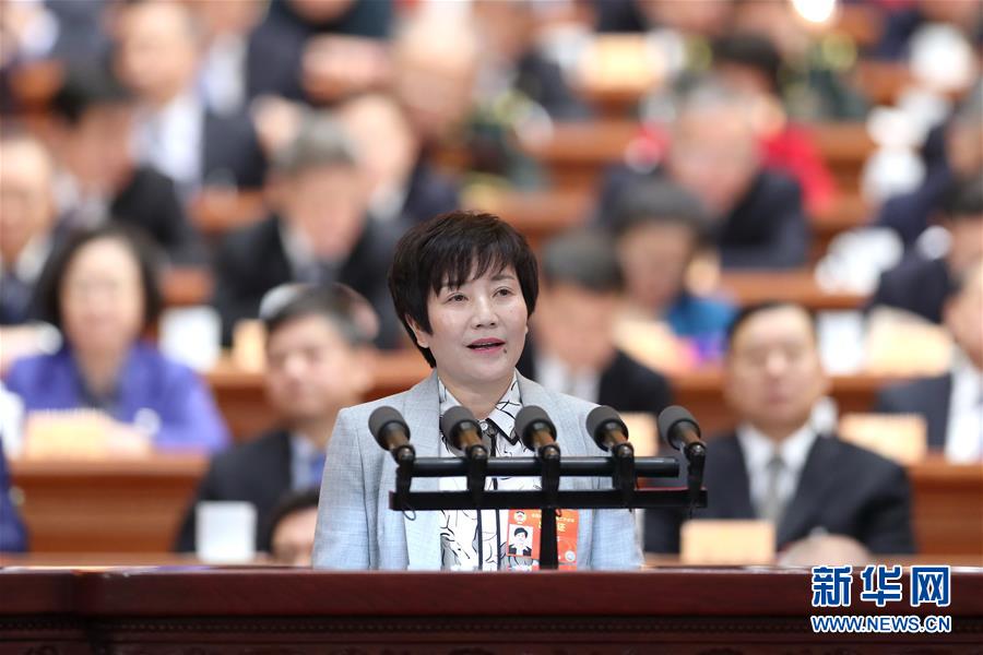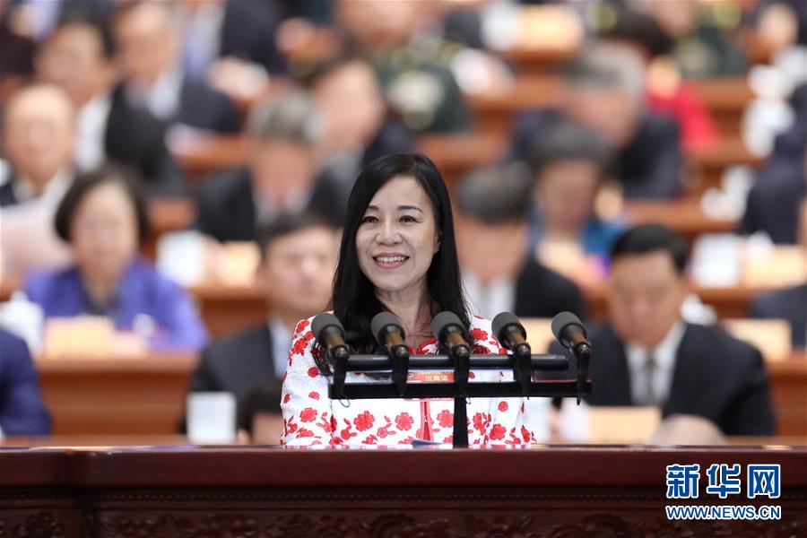3月11日,全国政协十三届二次会议在北京人民大会堂举行第四次全体会议。这是余留芬委员作大会发言。 新华社记者 丁海涛 摄