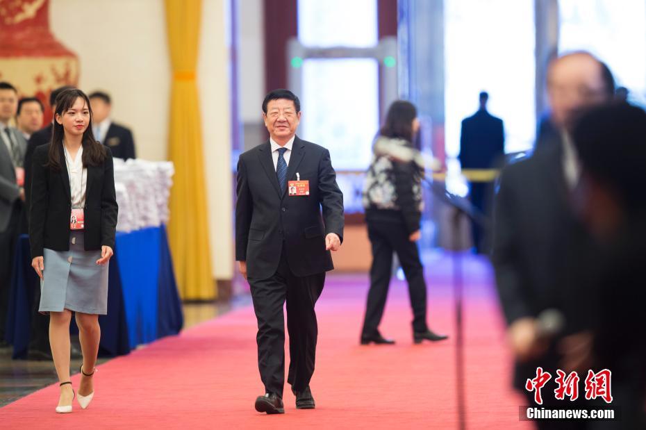 3月12日,十三届全国人大二次会议在北京人民大会堂举行第三次全体会议。图为国家林业和草原局局长张建龙步入“部长通道”接受采访。中新社记者 王骏 摄