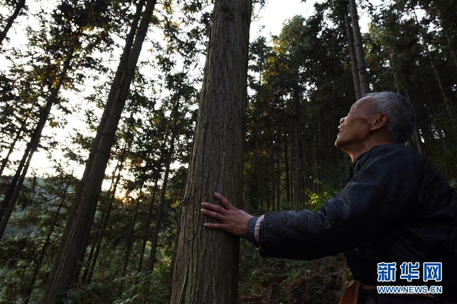 吴庆贤在查看杉树长势(3月11日摄)。 今年75岁的侗族老人吴庆贤,是贵州省黔东南苗族侗族自治州黎平县双江镇四寨村的村民。1984年之前,吴庆贤看村子周围都是茅草坡,一片荒凉,于是自己出资,远赴湖南等地购进杉树种和树苗,请人在村子周围的荒山上陆续种上杉树。 35年来,随着当年种植的树木慢慢长大,吴庆贤也变成了白发苍苍的老人,他亲眼看着侗寨周围的山头逐渐变绿、河水变清、树木成林,深感欣慰。吴庆贤把自己带头种植的6000余亩树林交给村集体,并带动邻近村寨的乡亲们植树造林5万余亩。 新华社记者 杨文斌 摄