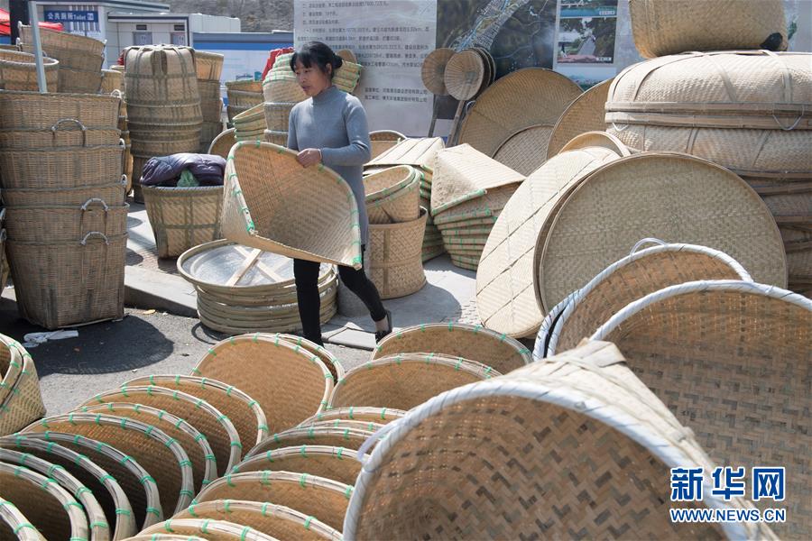 3月12日,一位女士在福建武夷山“柴头会”上挑选农具。 新华社记者 宋为伟 摄