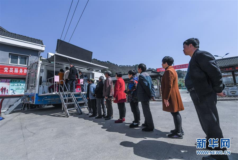 3月12日,杭州市临安区太阳镇上太阳村的村民等待办理公交优惠卡。 新华社记者 徐昱 摄