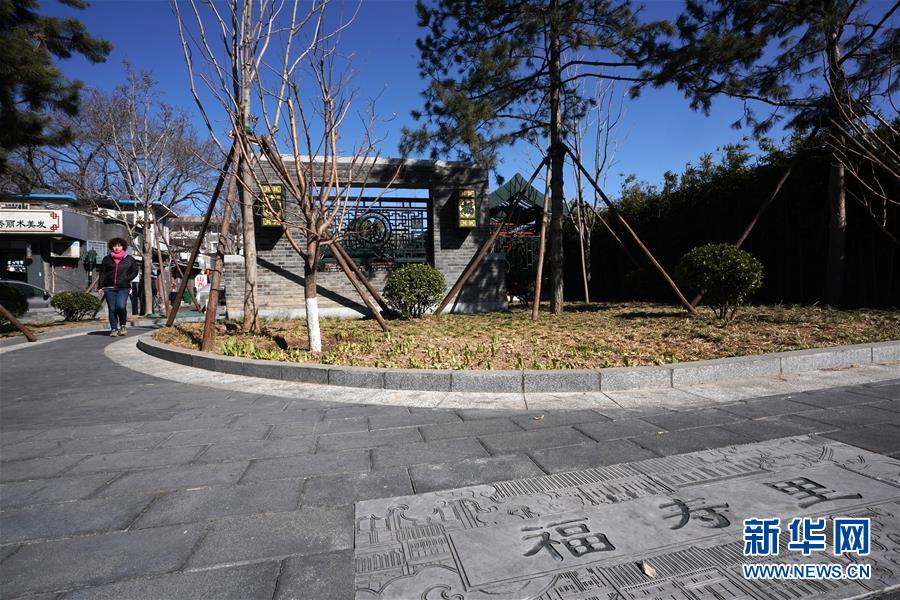 3月12日,一名市民从北京西城区东福寿里胡同南口的东福寿里口袋公园中走过。 新华社记者 鞠焕宗 摄