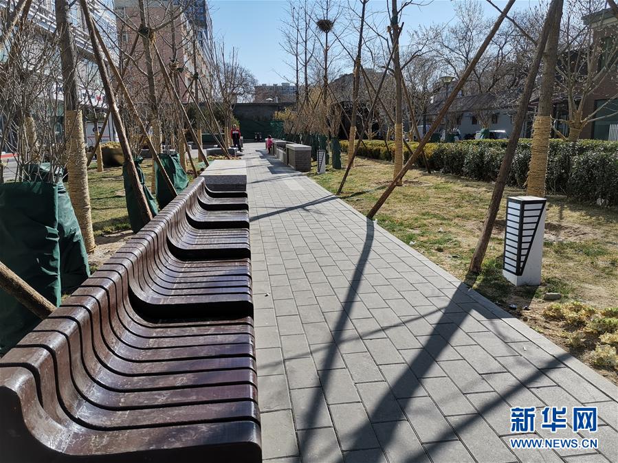 3月12日拍摄的北京市东城区雍和大厦口袋公园,几百平方米的公园已经成为附近居民散步的好去处。 新华社记者 陈旭 摄