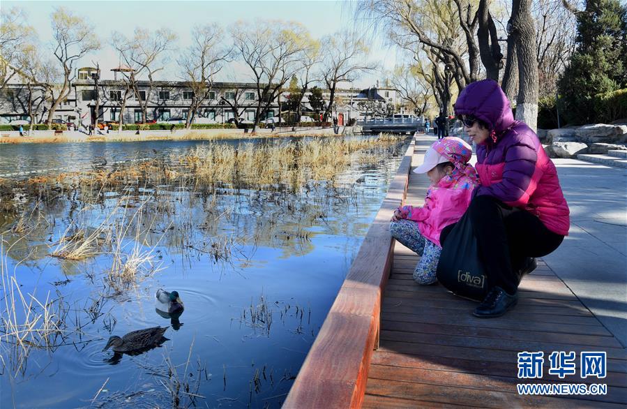 3月12日,市民在什刹海西海湿地公园环湖步道赏景。 当日,“绿色北京 绿色行动”宣讲团专家走进北京西城区什刹海街道办事处,就什刹海区域环境保护工作展开研讨。 据了解,什刹海区域2018年启动建设西海湿地公园,在保护什刹海地区水环境的同时,为市民休闲提供好去处。 新华社发(任超 摄)
