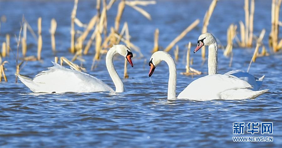 这是3月12日在内蒙古鄂尔多斯市达拉特旗境内的黄河沿线湿地拍摄的天鹅。 随着天气转暖,冰雪消融,内蒙古鄂尔多斯市达拉特旗境内黄河沿线湿地中栖息的天鹅成为早春时节一道亮丽的风景线。 新华社记者 彭源 摄
