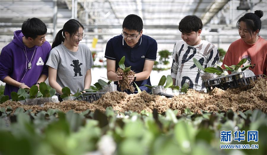夏忠强老师(中)在实践训练课上指导学生进行兰花栽培实践(3月12日摄)。 在辽宁省营口市辽宁农业职业技术学院兰花园里,41岁的园林系教师夏忠强正带领同学们上兰花栽培实践课。从东北林业大学毕业的夏老师,毕业后十几年扎根在兰花园里,潜心研究兰花栽培技术。 在学校实行产教融合、工学结合的号召下,这位在兰花园里既培育花草又教书育人的“双园丁”,用丰富的经验培养了一批批有实操经验的高等职业学生。 新华社记者 姚剑锋 摄