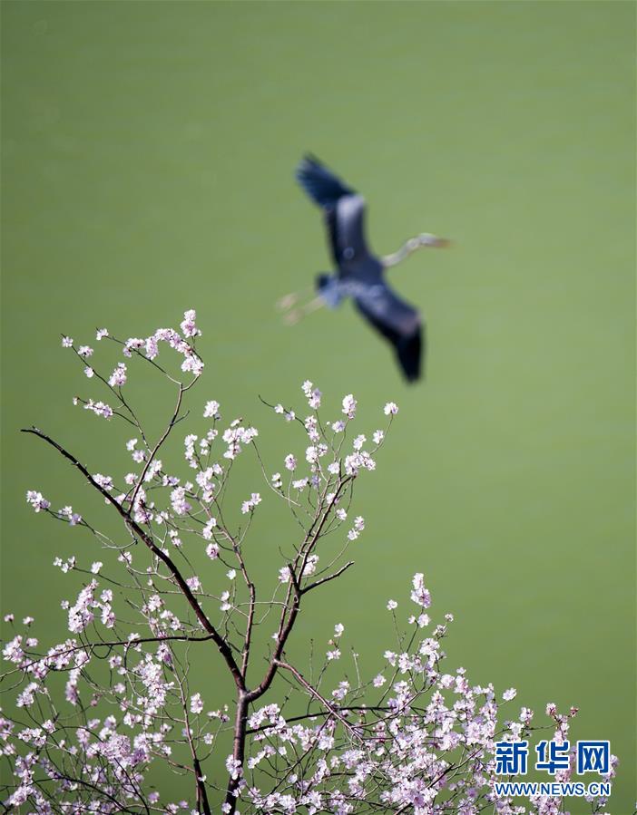 3月12日,一只苍鹭在黄河边飞舞。 随着气温回升,在山西省平陆县黄河边的一处悬崖上,栖息在这里的数百只苍鹭开始筑巢孵卵,飞舞、嬉戏、捕食,享受美丽春光。 新华社发(刘文礼 摄)