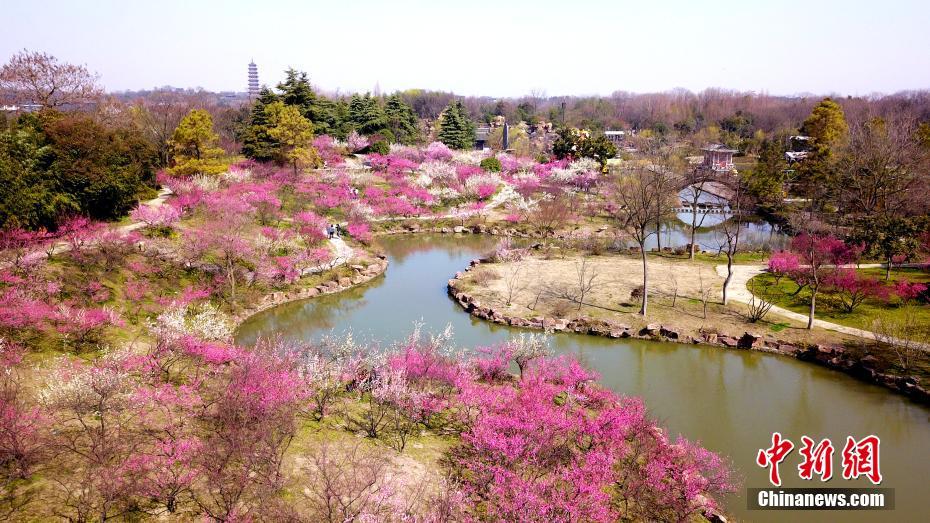 图为从空中俯瞰,盛开的梅花美如“世外桃源”。 孟德龙 摄