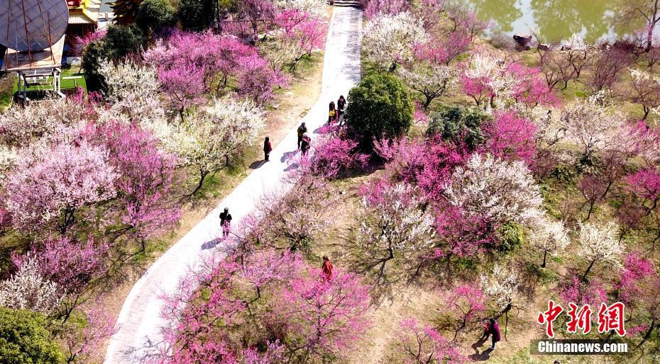江苏扬州春暖花开 民众赏梅踏春