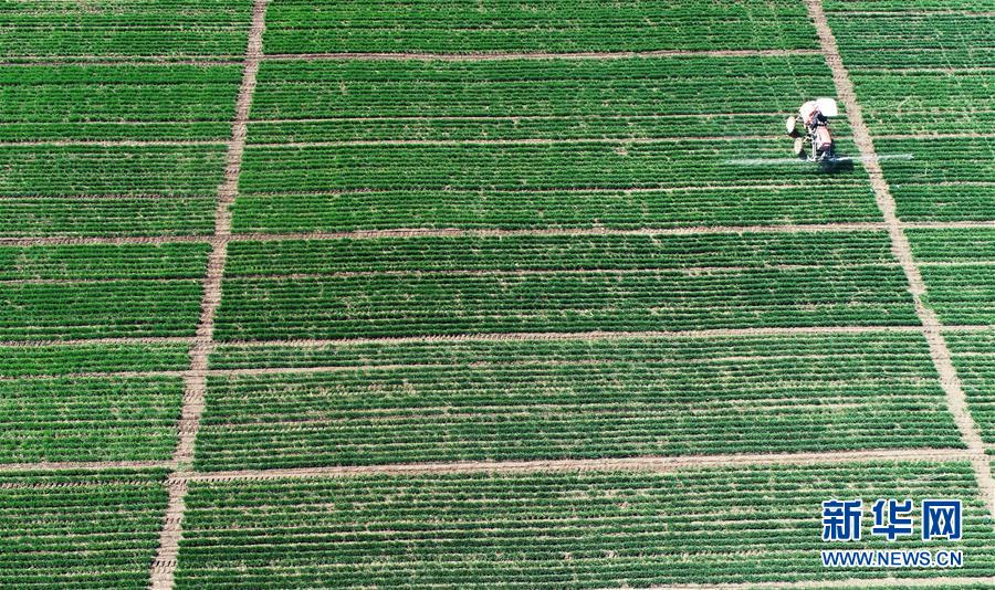 3月13日,山东省临沂市郯城县郯城街道的农民驾驶农机在麦田中作业(无人机拍摄)。新华社发(张春雷 摄)