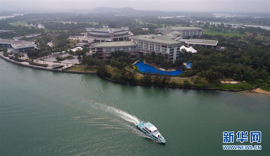 3月13日,游人乘船在博鳌亚洲论坛永久会址景区附近海域游览(无人机拍摄)。新华社记者杨冠宇摄