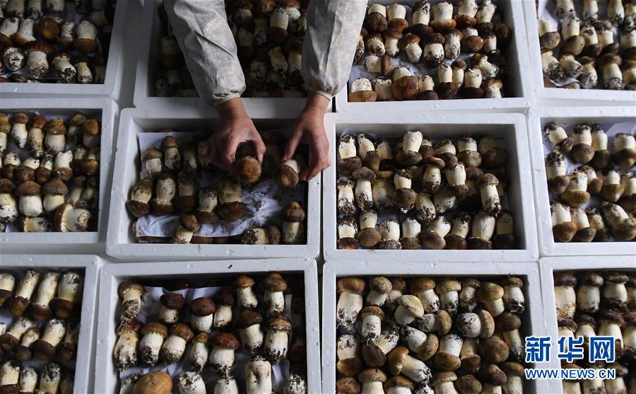 在陕西省汉中市西乡县午子农业有限责任公司的食用菌种植基地里,工人整理刚采摘的大球盖菇(3月13日摄)。近年来,陕西省汉中市西乡县积极调整农业产业结构,大力发展食用菌种植产业,推广“公司+专业合作社+基地+农户”模式,项目企业与贫困户签订协议,为贫困户提供原料和技术,定期回收食用菌产品,带动群众增收致富。 新华社记者刘潇摄