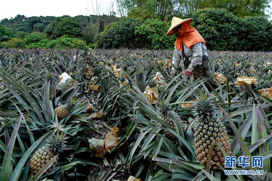 高雄市大树区果农在采收凤梨(3月13日摄)。 近日,台湾高雄市大树区果农种植的凤梨进入采收季。 新华社记者张国俊摄