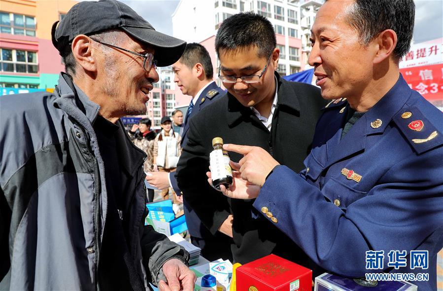 3月14日,在河北省秦皇岛市海港区西港路街道,居民在“3·15”宣传活动中学习如何辨别不合格商品。 “3·15”国际消费者权益日来临之际,各地举办形式多样的活动,维护消费者合法权益,提高人们的消费安全意识。 新华社发(曹建雄 摄)