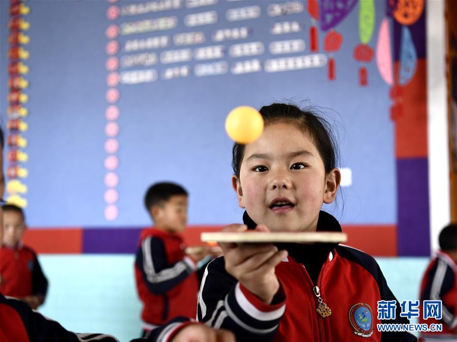 3月14日,青海省海南藏族自治州兴海县城南幼儿园的孩子在玩乒乓球。 近年来,青海省海南藏族自治州兴海县不断加大学前教育投入,建设幼儿园,配齐教育基础设施,孩子们的学前教育环境得到改善。 新华社发(张龙 摄)