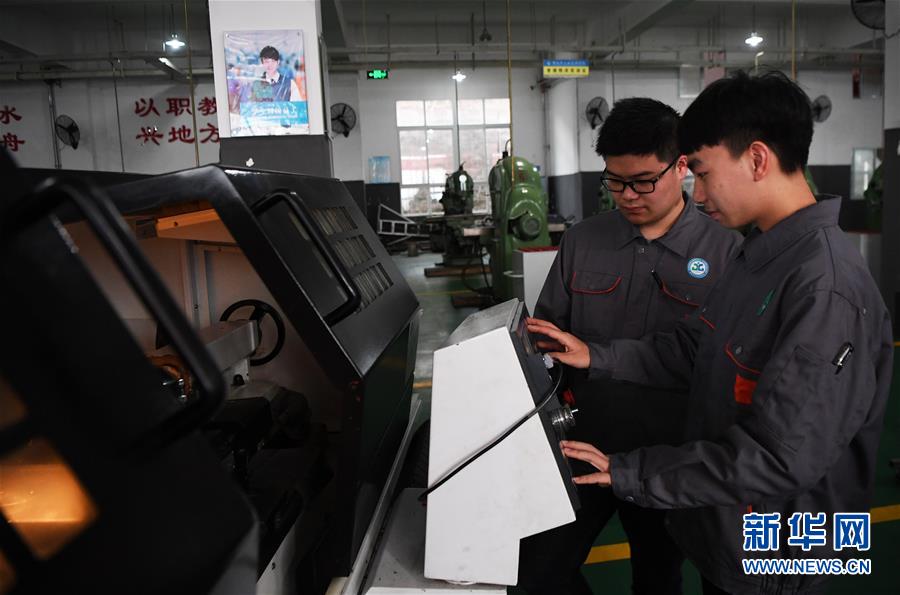 3月14日,在位于永川的重庆市工业技师学院,工业机器人应用与维护专业的学生(左三)在老师的指导下进行实操练习。 近年来,重庆市永川区以就业市场需求为导向,不断完善现代职业教育和培训体系,深化产教融合、校企合作,增强学生实习实训能力,培养高素质技能人才,有效促进了区域经济发展。 新华社记者王全超摄