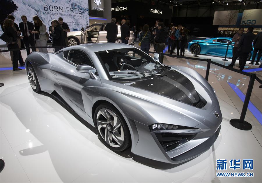 这是3月6日在瑞士日内瓦国际车展上拍摄的中国北汽集团旗下的Arcfox-GT电动车。新华社记者 徐金泉 摄