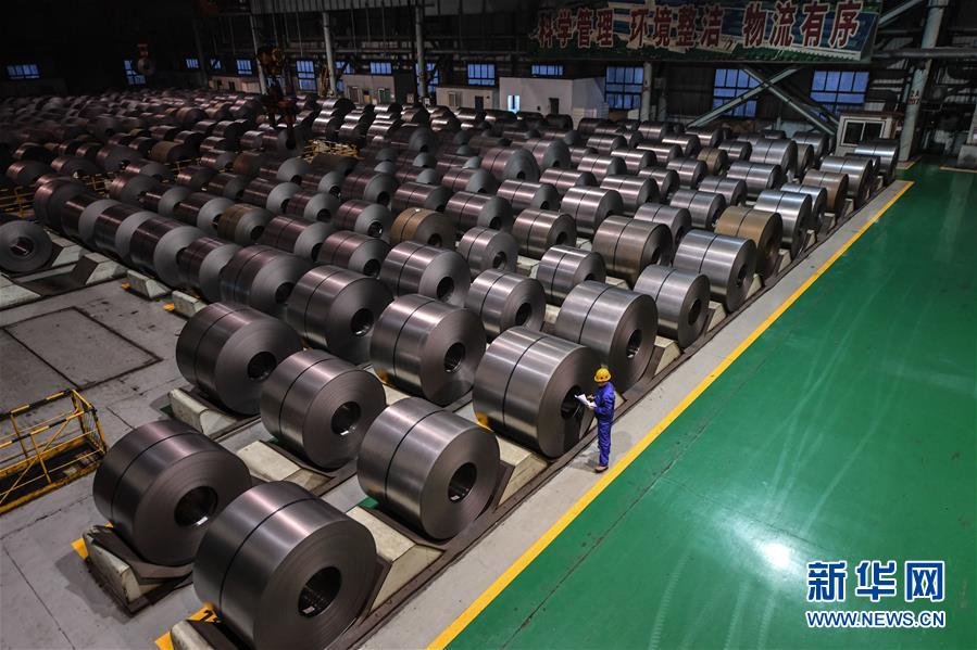本钢集团工人在清点板材产品(2017年11月4日摄)。新华社记者 潘昱龙 摄