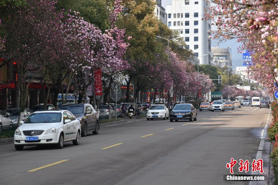 一条街,一处景,一座城。3月16日,浙江省临海市巾山路盛开的玉兰花竞相吐艶,宛若“花街”。玉兰花是临海的市花,在春风里,这条“千米花街”传递着春天的气息,成为临海街头一道靓丽的风景线。范宇斌 摄