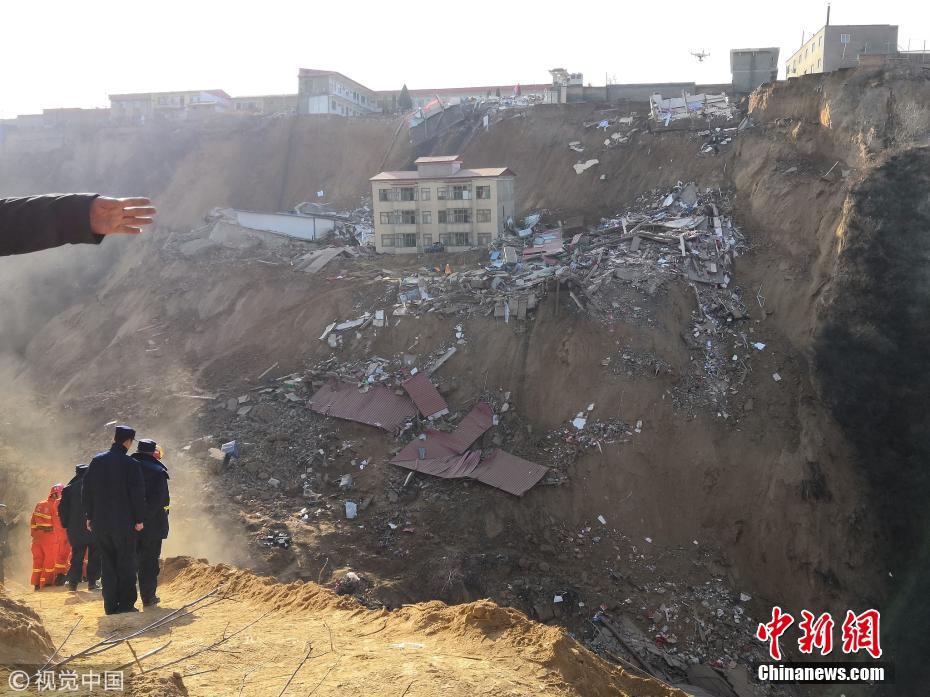 3月15日18时10分许,临汾市乡宁县枣岭乡卫生院北侧发生山体滑坡,致卫生院一栋家属楼(6户)、信用社一栋家属楼(8户)和一座小型洗浴中心垮塌。公安武警、应急救援、医疗卫生、自然资源等部门已投入600余人的救援力量。截至15日22时50分,共搜救出13人,发现2具尸体,初步核实尚有17人失联。图片来源:视觉中国