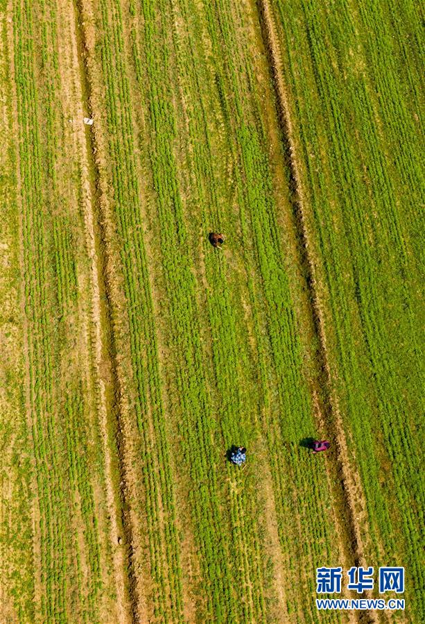 3月15日,江西省新余市渝水区水北镇楼前村的农户在中草药种植基地忙碌(无人机拍摄)。 新华社发(赵春亮 摄)