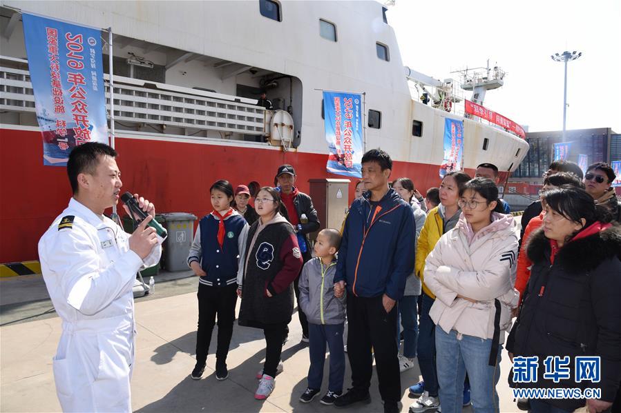 3月16日,由科研人员客串的讲解员为公众普及海洋科学考察领域的相关知识。 3月15日至16日,中国科学院海洋研究所在青岛基地举行以“科学引领 问道深蓝”为主题的海洋科学考察公益科普开放活动。 新华社记者 李紫恒 摄