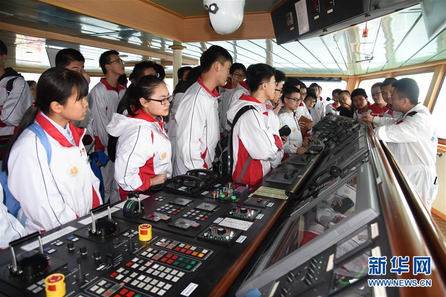 3月16日,学生在“科学”号科考船驾驶台参观。 3月15日至16日,中国科学院海洋研究所在青岛基地举行以“科学引领 问道深蓝”为主题的海洋科学考察公益科普开放活动。 新华社记者 李紫恒 摄