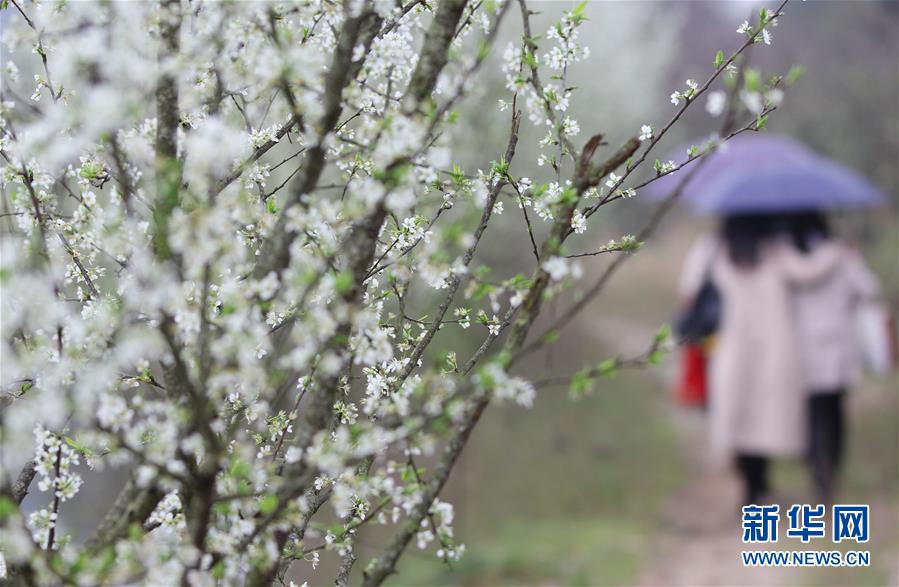 3月16日,在湖南省永州市道县白马渡镇雷家洞村潇水河堤上,游客在赏梨花。春光美好,人们纷纷走进大自然,拥抱春天。新华社发(何红福 摄)