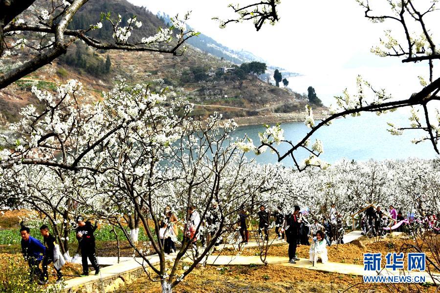 3月16日,游人在重庆市巫山县曲尺乡柑园村的脆李园中游园赏花。春光美好,人们纷纷走进大自然,拥抱春天。新华社发(王忠虎 摄)