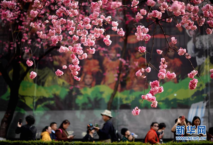 游人在昆明圆通山公园观赏盛开的樱花(3月16日摄)。 近日,云南省昆明市迎来樱花盛开的时节。昆明圆通山公园的数千株樱花灿烂绽放,吸引了市民和游客前来观花赏景。 新华社记者 秦晴 摄
