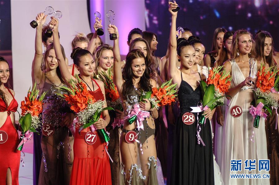 首届中国(葫芦岛·兴城)国际泳装文化节中获奖模特合影(2011年8月摄)。 新华社发