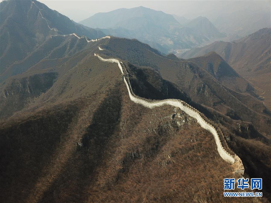 这是3月18日无人机拍摄的九眼楼长城及周边长城景观。 九眼楼长城位于北京市延庆区四海镇,该楼是明代长城中建筑规模和形制最大的一座敌楼,因楼体为青砖砌筑,每边并排九个箭窗,故称“九眼楼”。 新华社记者 侯东涛 摄