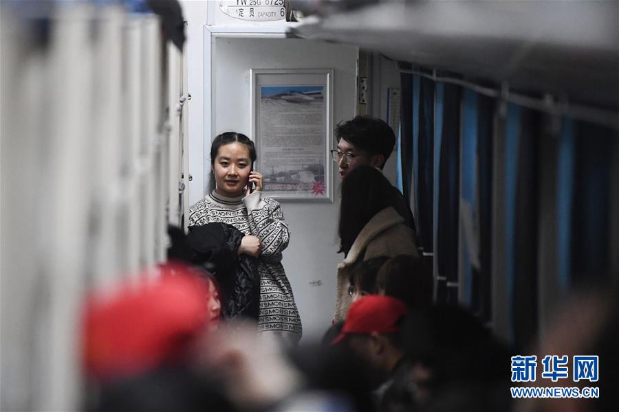 3月18日,一位实习支教生登上“支教专列”后用手机与家人通话。 3月18日晚,西北师范大学589名实习支教生从甘肃兰州启程,乘坐中国铁路兰州局集团公司专门开行的K4091次“支教专列”,奔赴新疆阿克苏地区开展为期一学期的基层实习支教活动,以缓解当地中小学师资短缺的状况。据了解,2008年以来,西北师范大学已经选派22批赴新疆实习支教生,共4339名学生完成实习支教任务。 新华社记者 陈斌 摄
