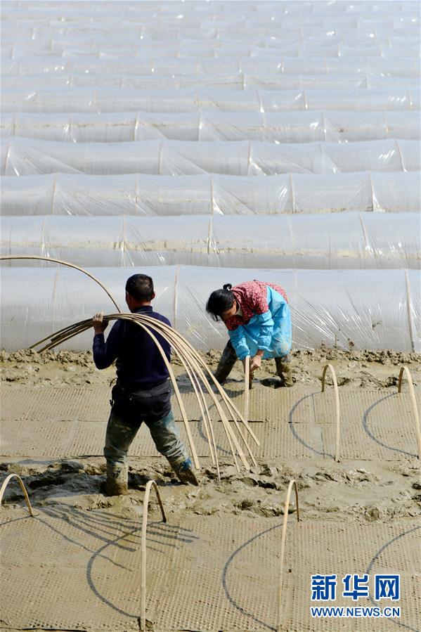 3月18日,农民在湖南省双峰县荷叶镇长塘村的秧田里劳作。 湖南省双峰县农民抢抓晴好天气开展春耕春播作业,田间地头一片忙碌。 新华社发(李建新 摄)