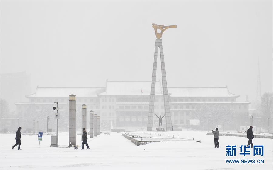 3月21日,市民经过长春市文化广场。当日是农历二十四节气中的春分。受较强冷空气影响,吉林省多地迎来降雪天气。 新华社记者许畅摄