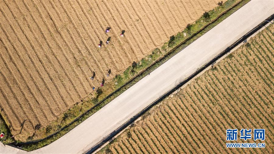 3月21日,贵州省毕节市黔西县林泉镇农民在田间劳作(无人机拍摄)。当日是二十四节气中的春分,全国多地农业生产进入春季繁忙时节。 新华社记者陶亮摄